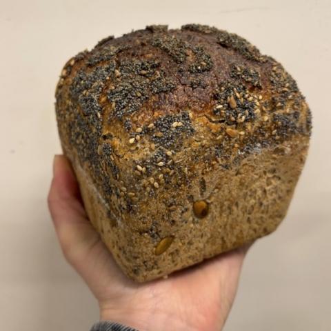 *farine de froment, * farine de seigle, *farine d’épeautre, *farine de sarrasin, *lin brun, *pavot, *graines de sarrasin, *tournesol, *millet, *levain naturel, sel